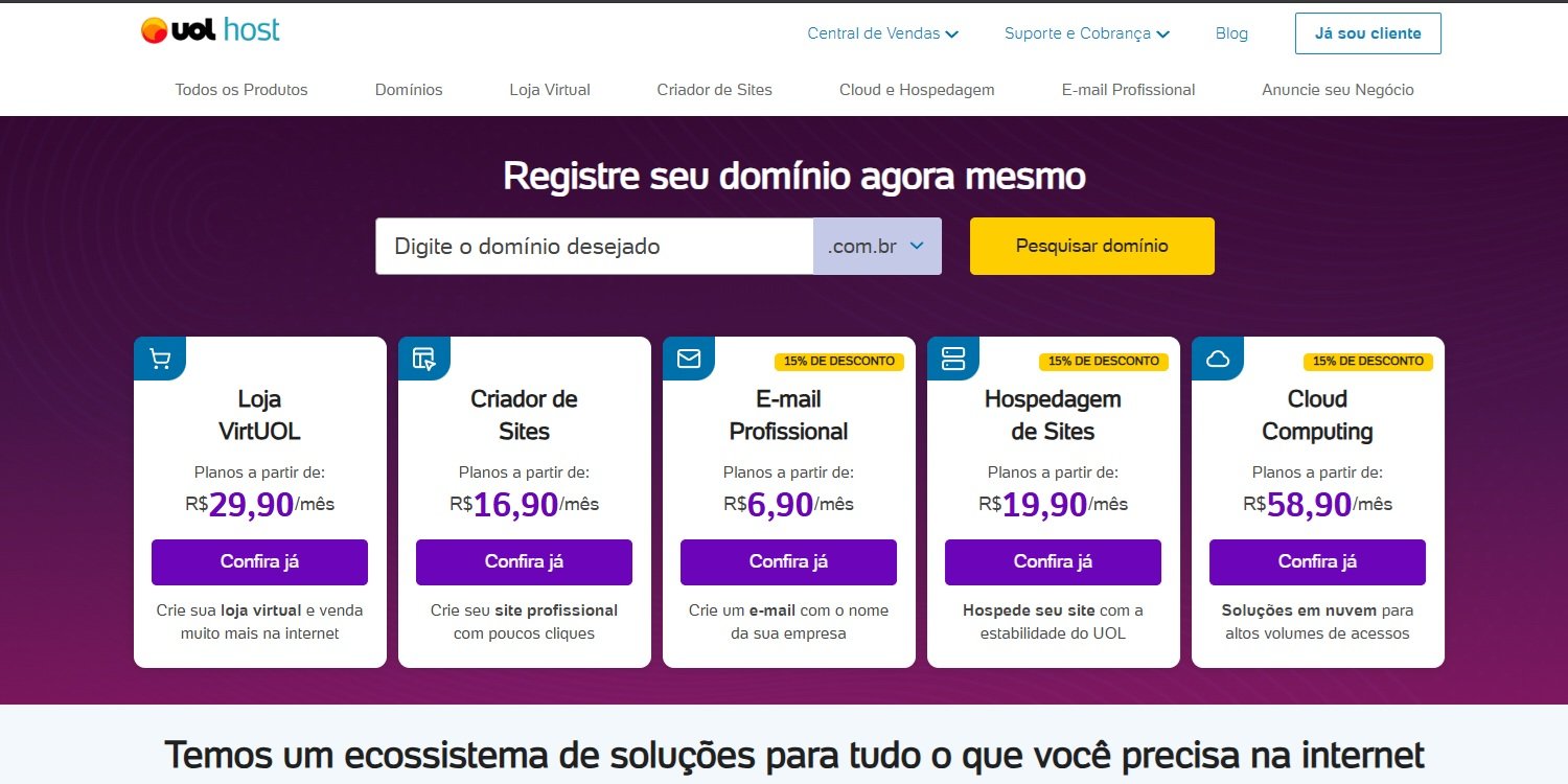UOL HOST Criada em 2008, parte do grupo UOL, com